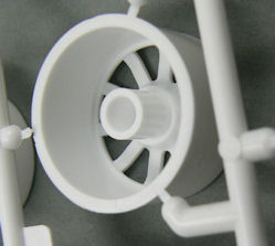 The first job at hand for this build was the adaptation of the rims. If you look closely at the first image and the image of the box of the kit, you'll see that there's a difference between the rims.In the Tamiya kit there are 10-spoke rims supplied. The rims with which the Peugeot team took part in the Rally de Monaco in 2005 (the car that can be build from this kit).
