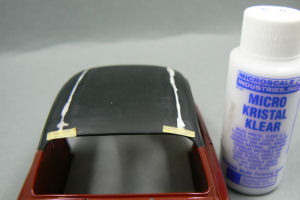 The Kristal Klear glue is water soluble and I used a wet Q-tip to remove the excess glue from the roof before the glue dried.