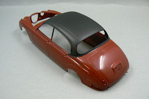 At first I tried to recreate the structure of the roofmaterial as I had done with the intake plenum of the Ferrari F430. The attempt failed (probably because I had thinned the paint a bit too much). But afterwards I'm glad it failed, because on second thought I don't think it would have looked right.